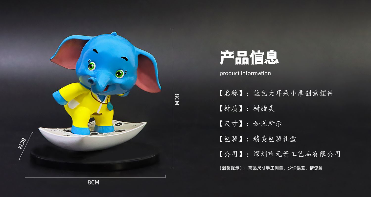 藍(lán)色大耳朵小象創(chuàng)意擺件定制