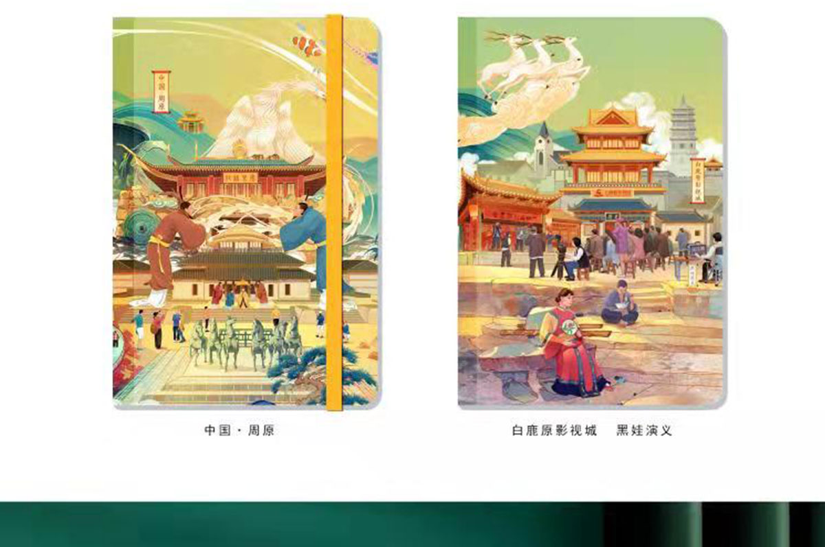 白鹿原影視城,位于陜西省西安市藍田縣前衛(wèi)鎮(zhèn),始建于2013年,是以影視拍攝服務(wù)為主,兼具觀光旅游、文化娛樂、休閑度假等功能的綜合性旅游區(qū)。本次元景文創(chuàng)為白鹿原影視城定制產(chǎn)品包括多種筆記本,文具用品等;具體定制文創(chuàng)產(chǎn)品如下:
